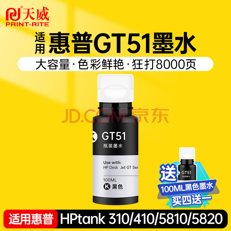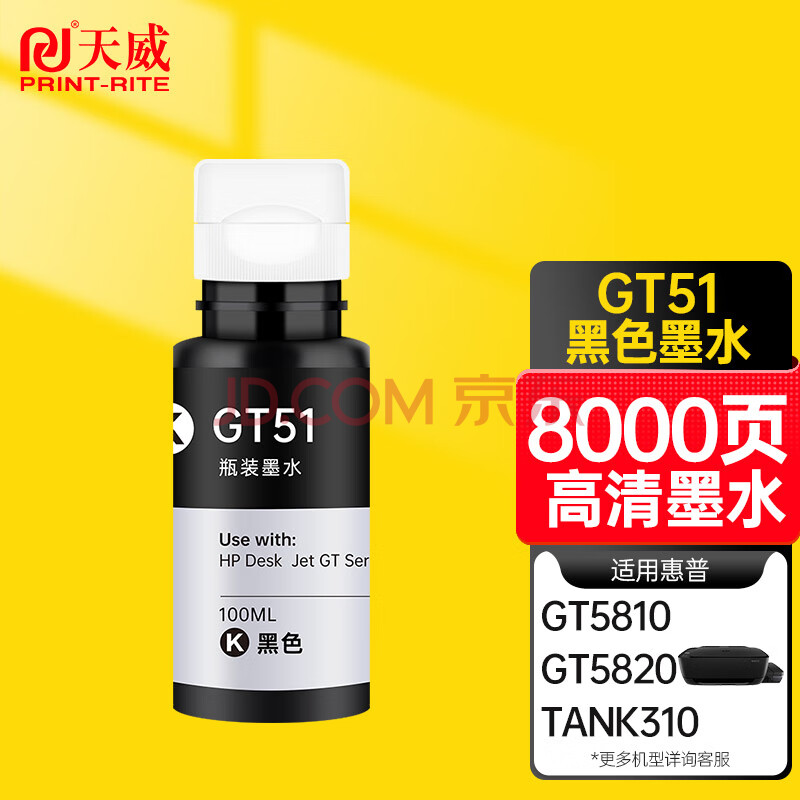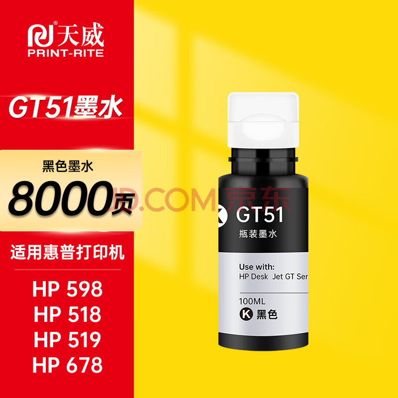 商品相册:天威适用惠普HP Tank598 518 519 678 588 758 755 798 728 589 510 538 511 打印机墨盒墨水GT53/GT52/GT51黑色第