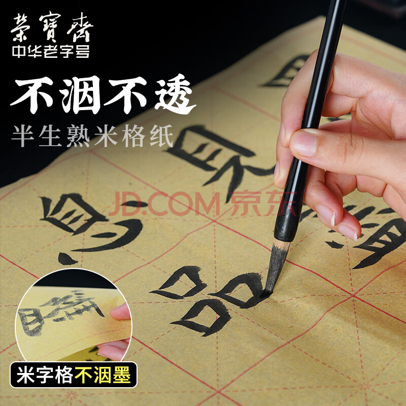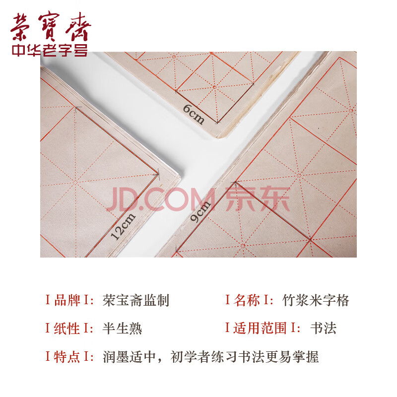 商品相册:荣宝斋 米字格宣纸毛边纸 日星宣纸半生熟仿古书法专用练习作品 初学者毛笔字帖 竹浆纸6*60格/70张第