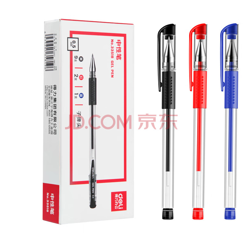 商品相册:得力(deli)经典办公拔帽中性笔水笔 0.5mm子弹头签字笔 9黑2红1蓝 办公用品33518第