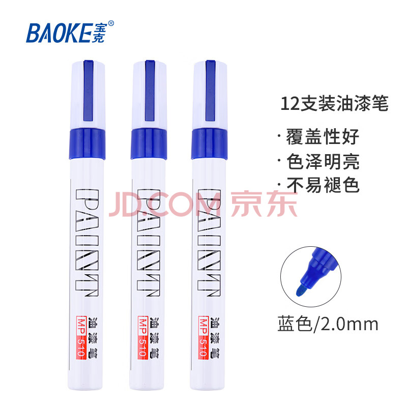 商品相册:宝克(BAOKE)MP510 蓝色油性油漆笔 签名笔签到笔记号笔涂鸦笔 12支/盒第