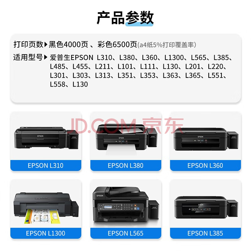 商品相册:天色T6721墨水(适用爱普生L220/L310/L313/L211/L360墨水L380/L455/L385墨仓式打印机L485/L565/L358/L365)第