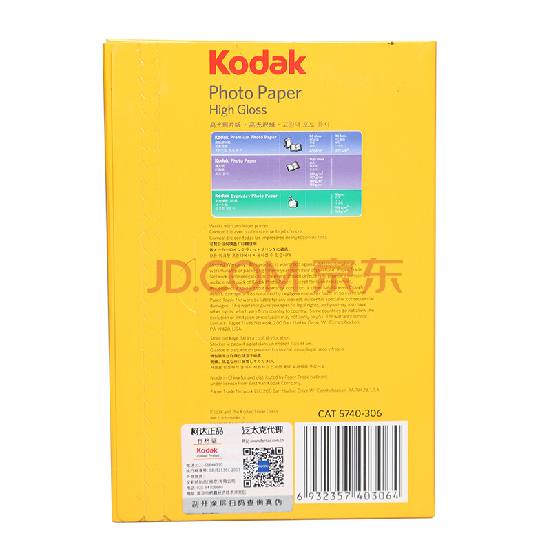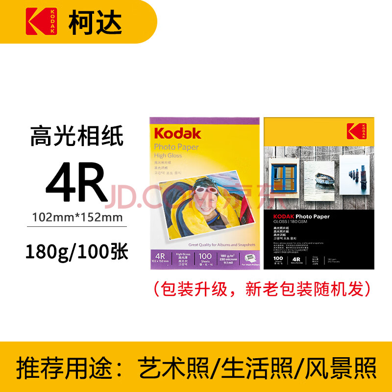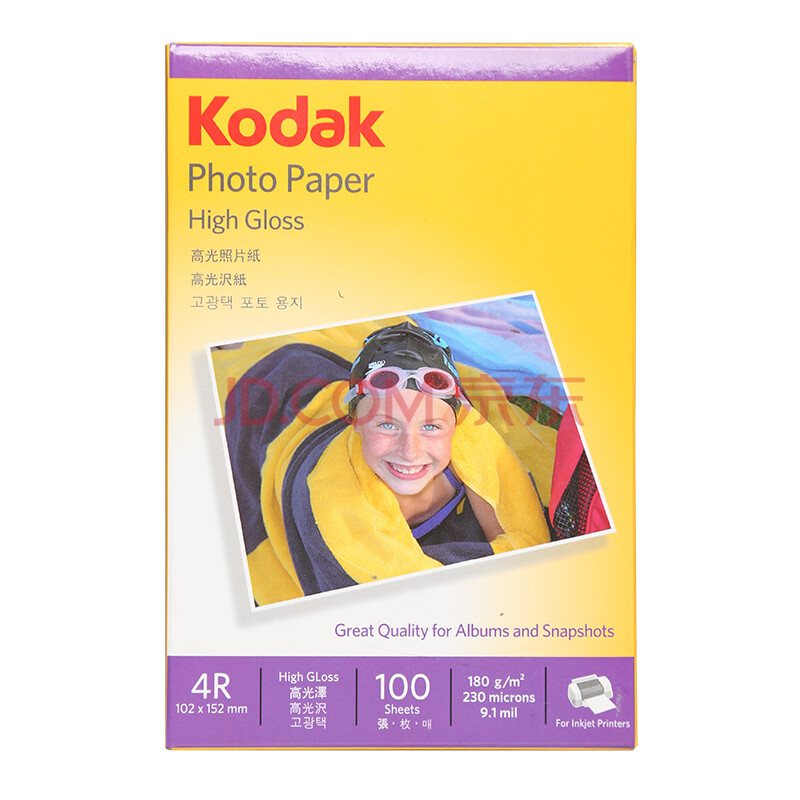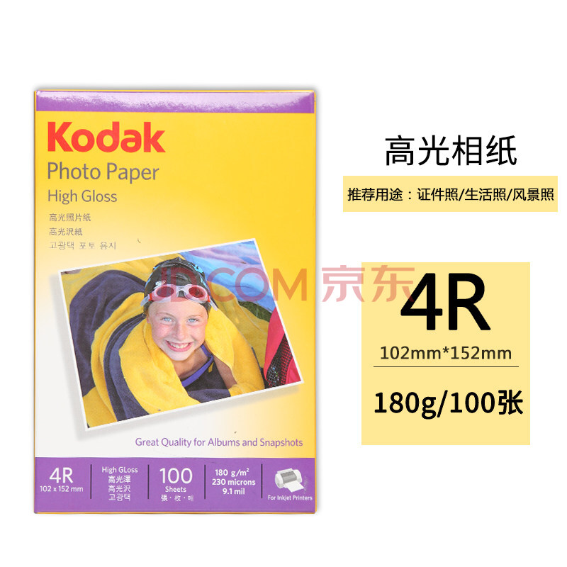 商品相册:KODAK柯达 4R/6英寸 180g高光面照片纸/喷墨打印相片纸/相纸 100张装 5740-306第