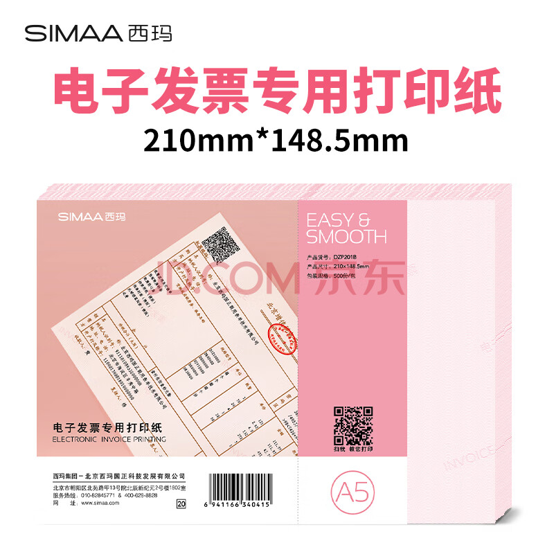 商品相册:西玛(SIMAA)A5打印纸 电子发票专用激光打印纸 全国通用 210*148.5mm 500页/包 DZP201B 第