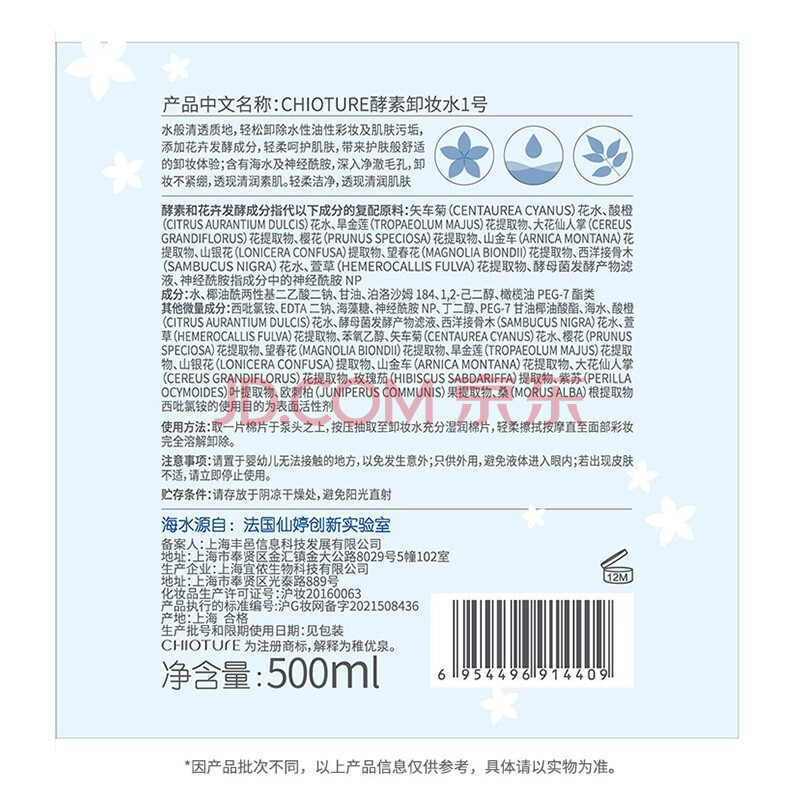 商品相册:稚优泉卸妆水1500ml眼唇脸三合一温和清洁敏感肌可用情人节礼物第