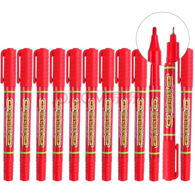 商品相册:宝克(BAOKE)MP2915 粗细双头多用油性勾线笔记号笔 会议笔签字笔马克笔红色12支/盒第