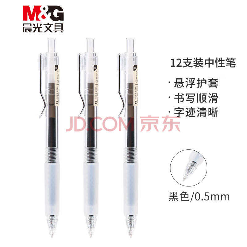 商品相册:晨光(M&G)文具【刷题笔】悬浮护套0.5mm黑色按动中性笔 子弹头签字笔 学生办公水笔12支/盒AGPH7302第