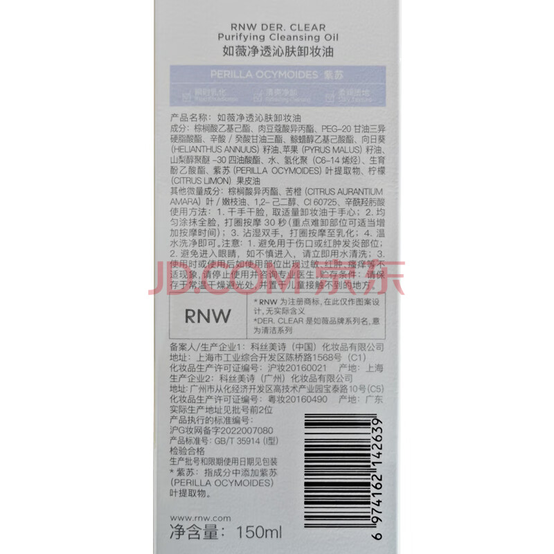 商品相册:如薇(RNW)紫苏卸妆油150ml 卸妆水温和不刺激极速乳化眼唇深层清洁毛孔黑头第