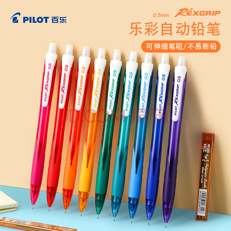 商品相册:百乐(PILOT)乐彩自动铅笔0.5儿童铅笔一二年级小学生书写铅笔尾带橡皮日本文具 HRG-10R 红色杆单支第
