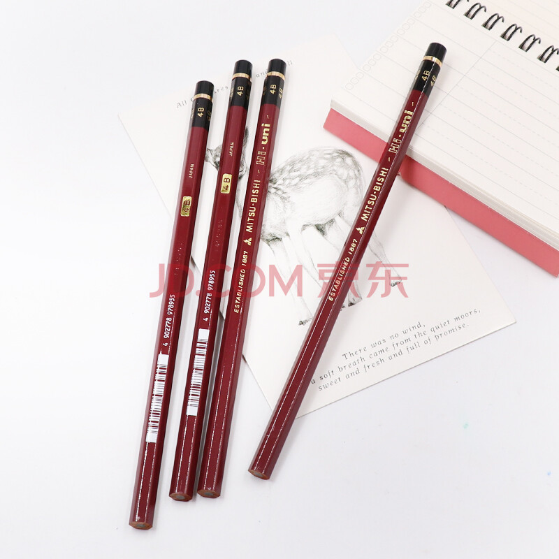 商品相册:uni三菱 素描绘画铅笔 学生铅笔HI-UNI木杆铅笔4B 12支装第