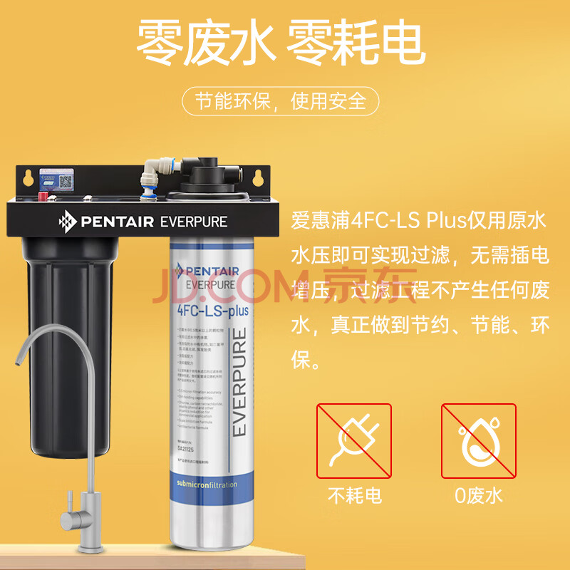 商品相册:爱惠浦(Everpure)高端厨下 抑垢除铅直饮矿物质水 4.1L/min 大流量0废水净水器 10000L额定净水量Combo-4FC-LS-plus第