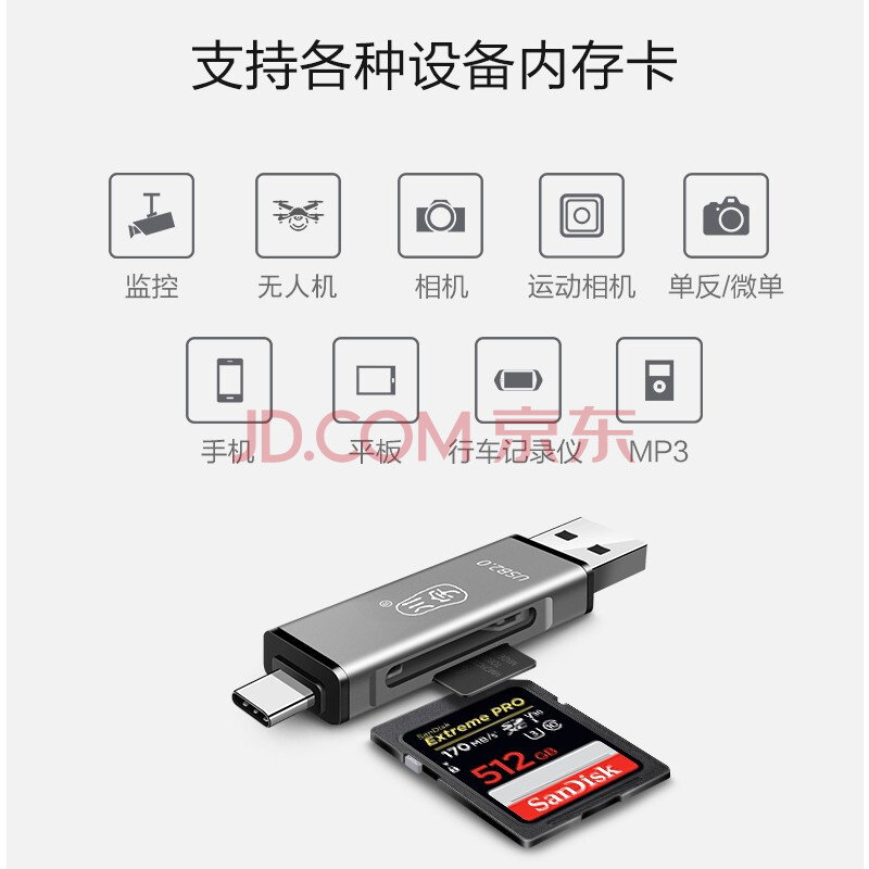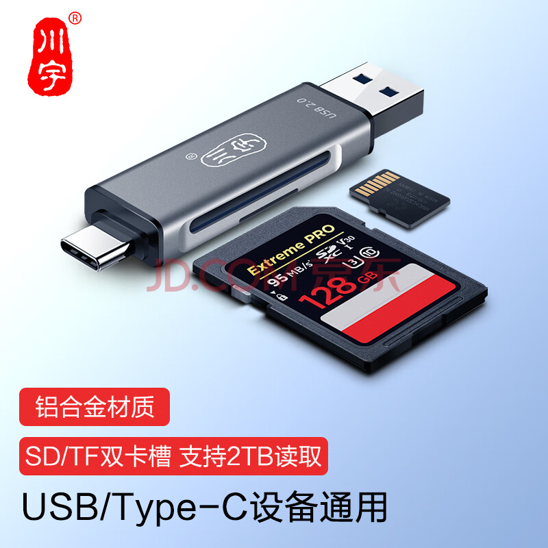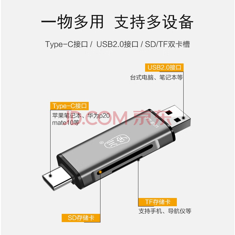 商品相册:川宇USB高速SD/TF卡铝合金读卡器Type-c单反相机存储卡行车记录仪无人机电脑苹果手机内存卡多功能合一第