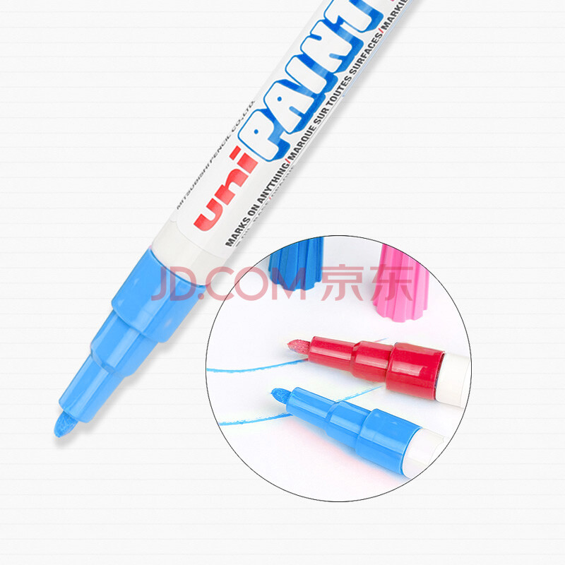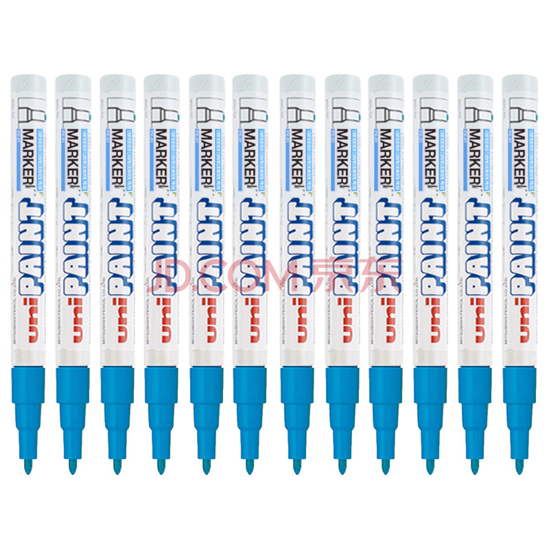 商品相册:uni三菱 PX-21 小字油漆笔 0.8-1.2mm工业记号笔物流笔(可用于汽车补漆)浅蓝色 12支装第