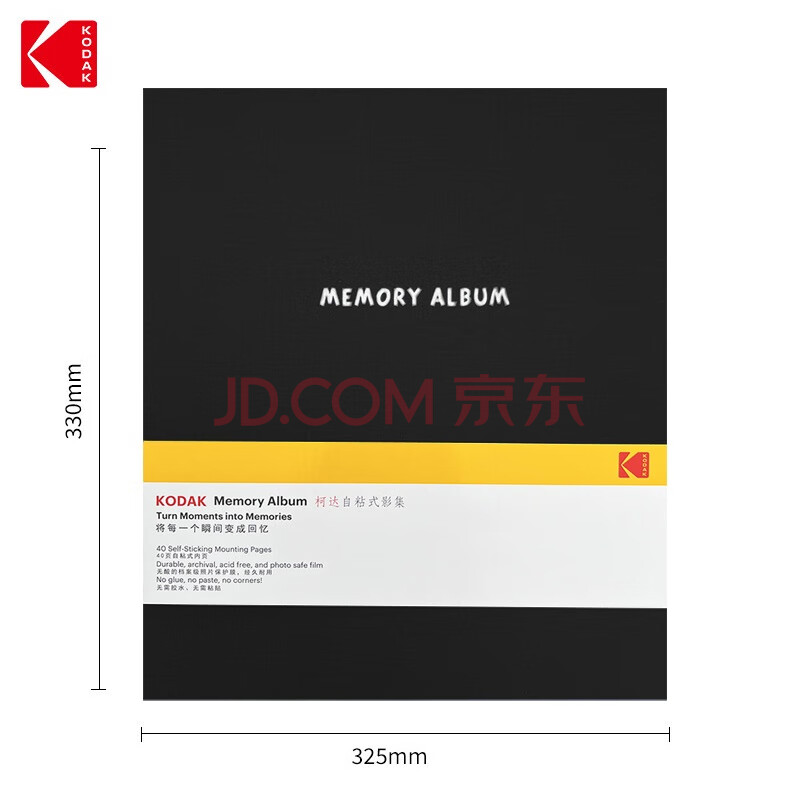 商品相册:Kodak柯达相册覆膜自粘式18寸diy手工制作宝宝成长家庭影集相册本开学军训学校时光纪念册9891-096黑第