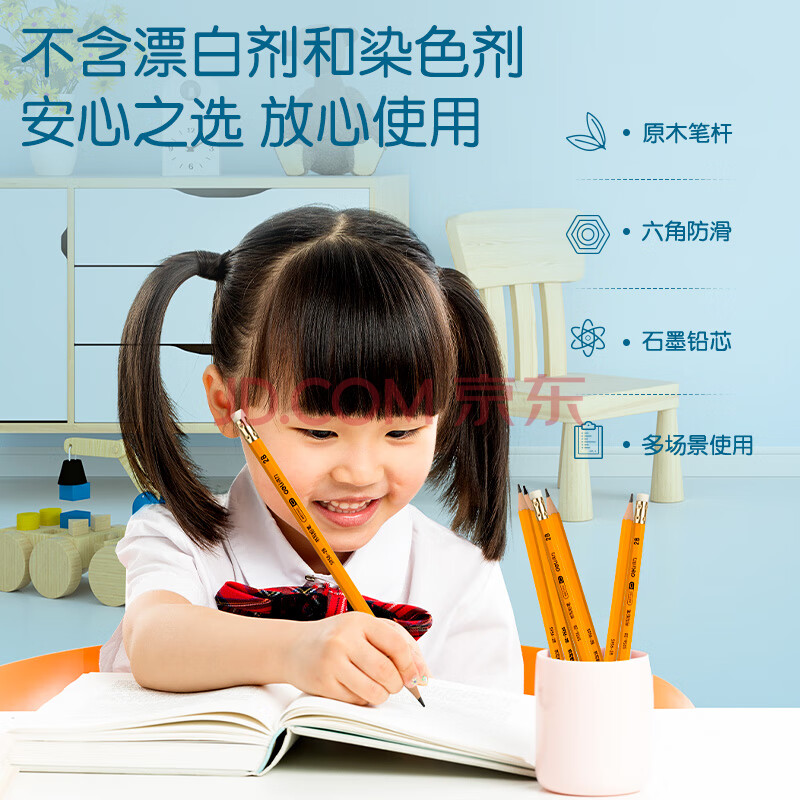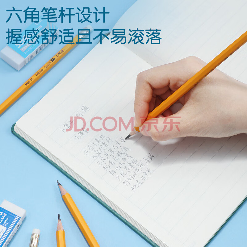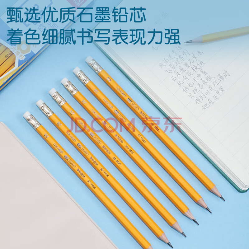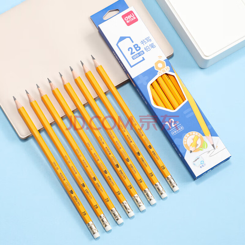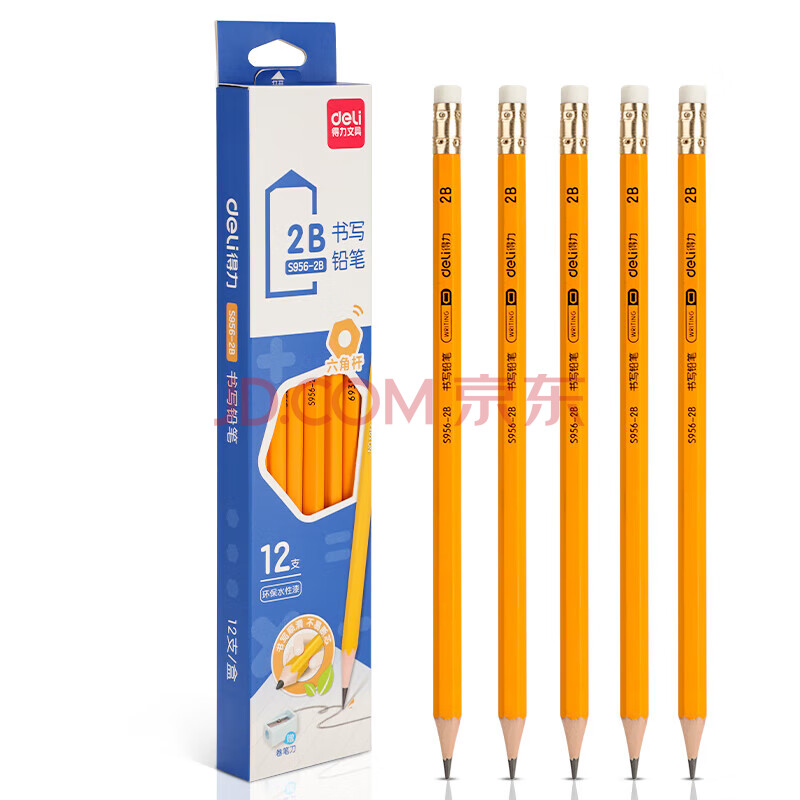 商品相册:得力(deli)12支2B铅笔考试绘图书写铅笔学生练字笔带橡皮头铅笔S956-2B学生开学文具第