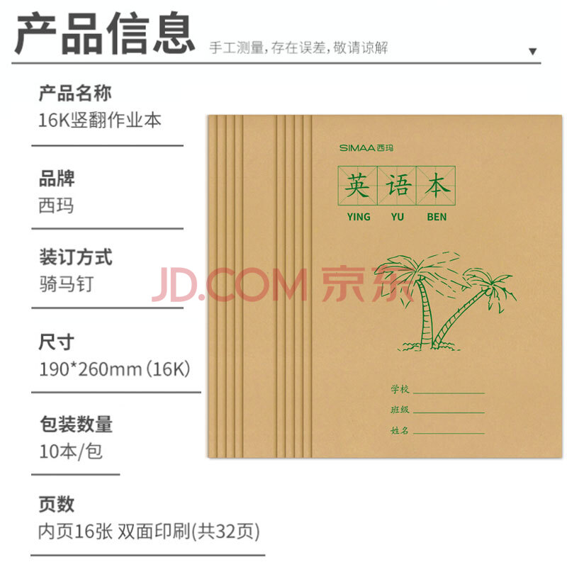 商品相册:西玛(SIMAA)小学生3-6年级统一标准16K大号作业本 英语作业本-10本装 8821第
