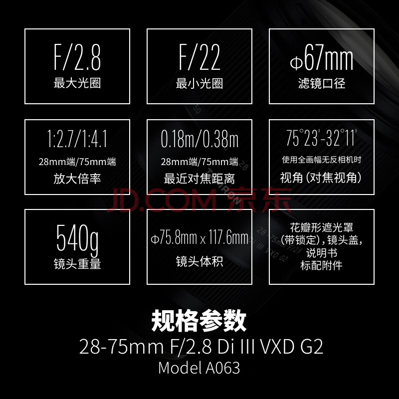商品相册:腾龙(Tamron)A063S 28-75mm F/2.8 Di III VXD G2二代大光圈标准变焦 微单镜头 风光人像(索尼全幅E卡口)第