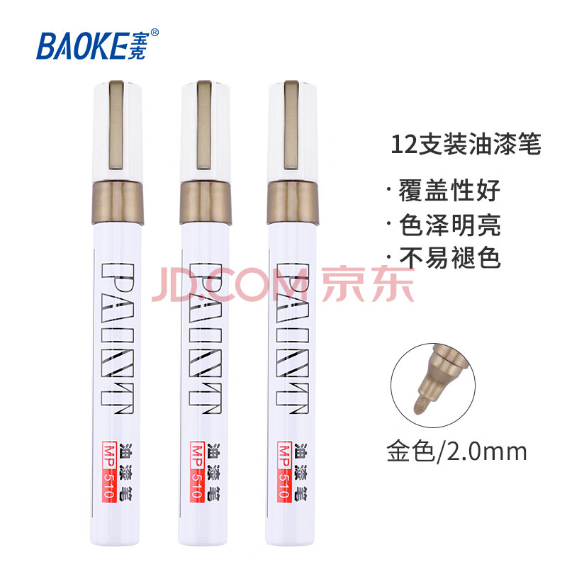 商品相册:宝克(BAOKE)MP510 金色油性油漆笔 签名笔签到笔记号笔涂鸦笔 12支/盒第