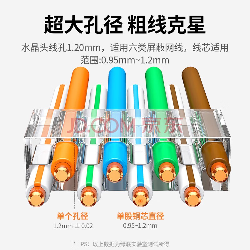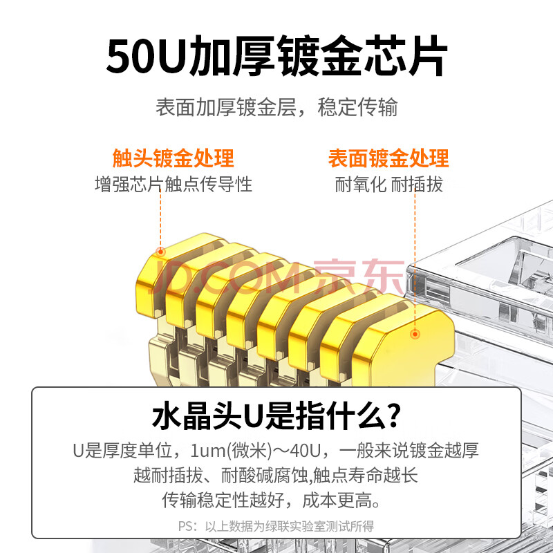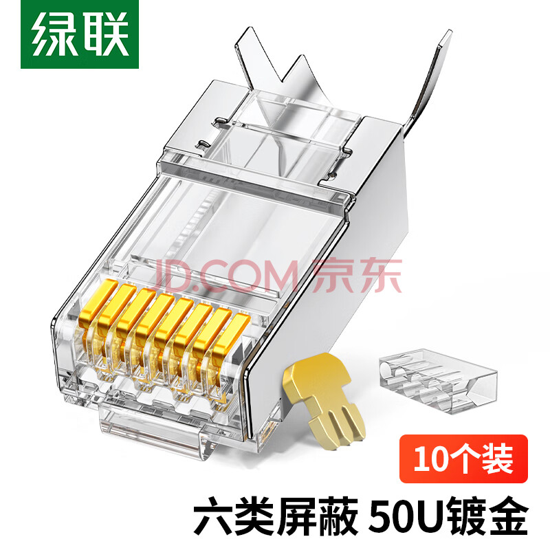 商品相册:绿联六类网线屏蔽水晶头 6类千兆网络接头 50U镀金工程级RJ45电脑网线连接器CAT6两件式接头10个 20842第