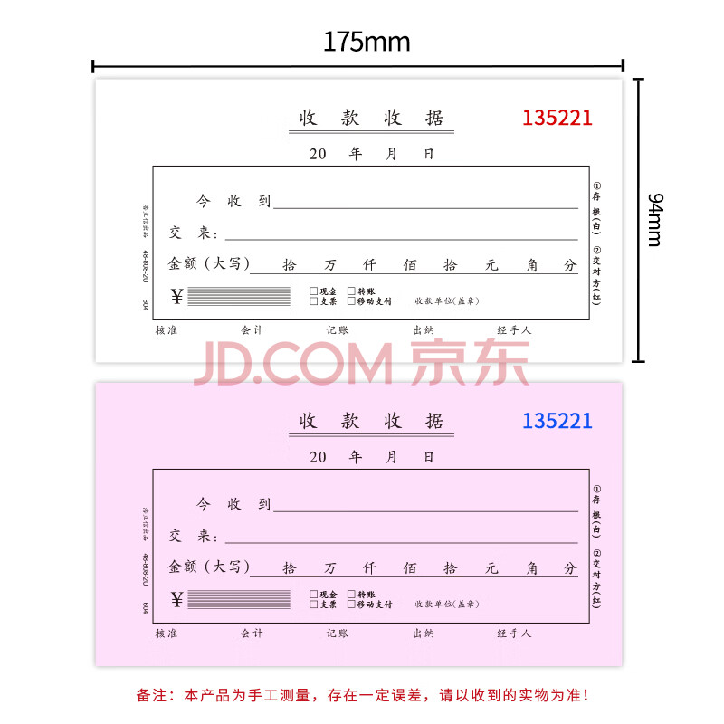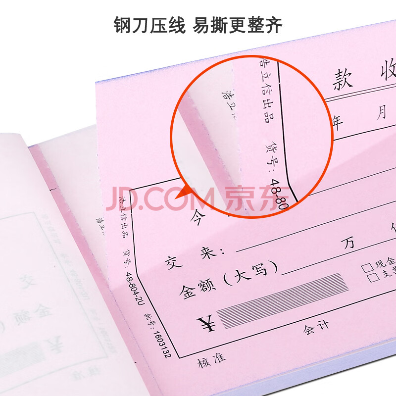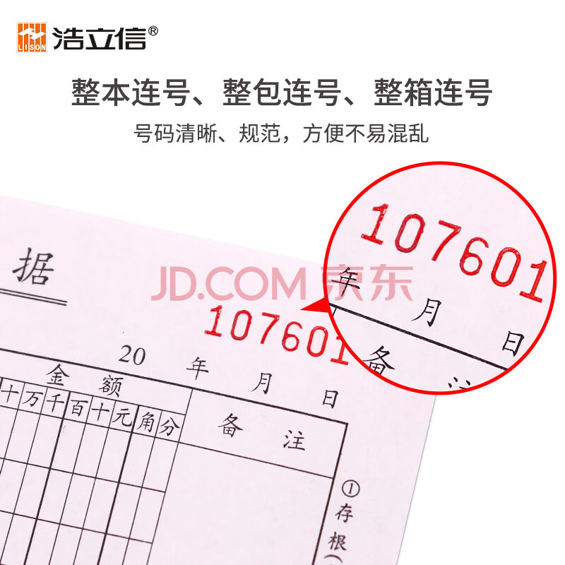 商品相册:浩立信 财务单据 无碳复写收款收据 二联十万位 单栏 (10本装1本50份)第
