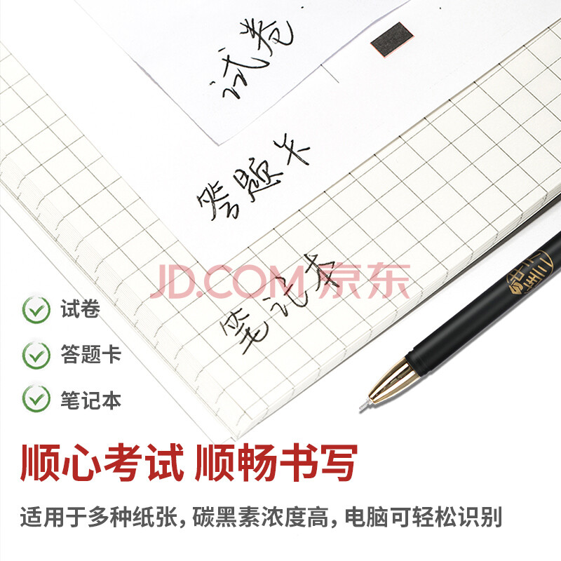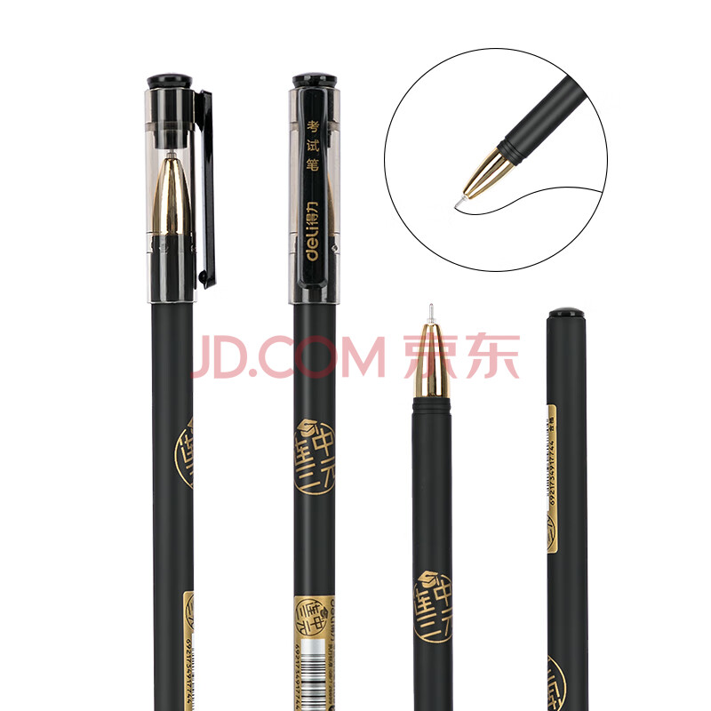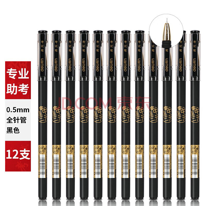 商品相册:得力(deli)连中三元拔帽中性笔考试笔 考试中性笔备考刷题笔 0.5mm全针管黑色 考试可用 12支/盒S103第