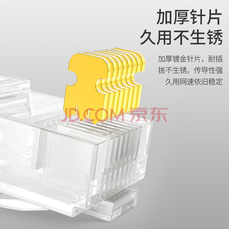 商品相册:万级超五类水晶头 Cat5e非屏蔽网线接头8P8C纯铜网络水晶头RJ45连接器 10个/装 WJ-15112第