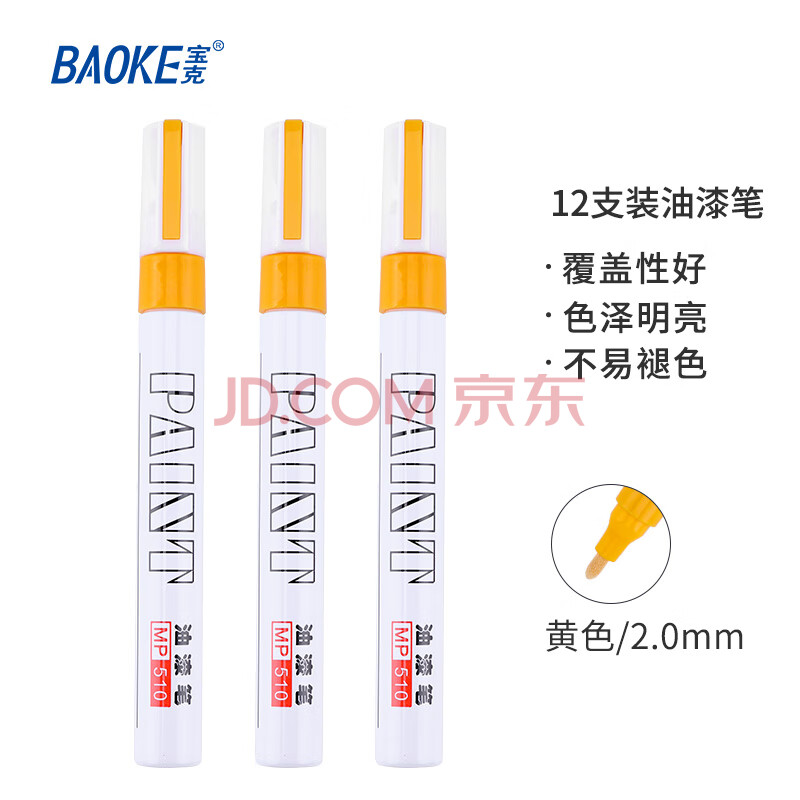 商品相册:宝克(BAOKE)MP510 黄色油性油漆笔 签名笔签到笔记号笔涂鸦笔 12支/盒第