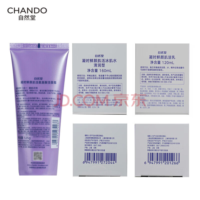 商品相册:自然堂凝时鲜颜洁水乳(洗面奶125g+水160ml+乳120ml)生日礼物第