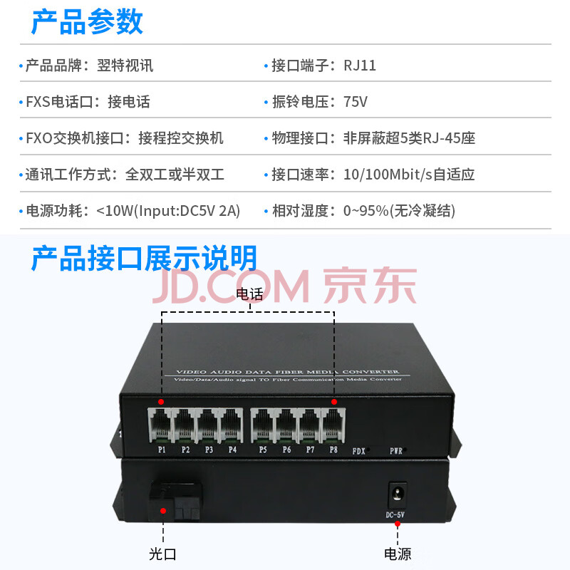 商品相册:翌特视讯(ETV) ETV-8P 电话光端机 8路话PCM语音光端机光纤收发器延长器FC/SC接口第