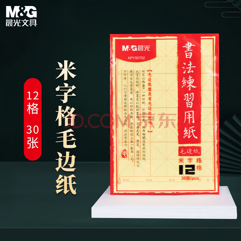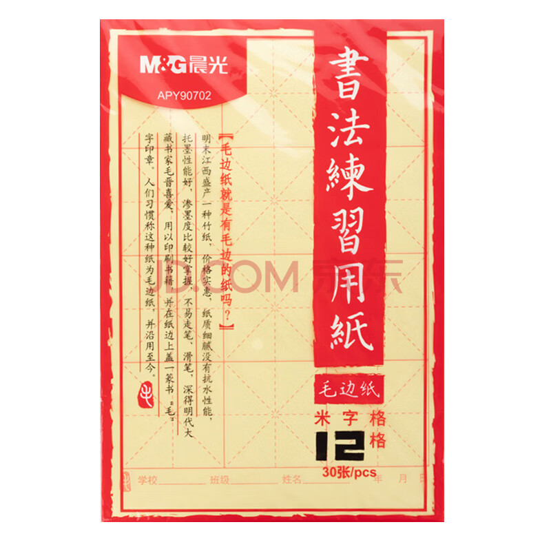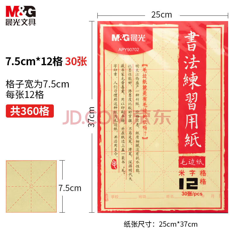 商品相册:晨光(M&G)文具毛笔书法纸毛边纸米字格 宣纸书法专用纸练习纸 初学者练字字帖开学礼物7.5cm*12格APY90702第