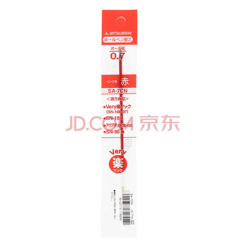 商品相册:uni三菱 圆珠笔芯SA-7CN 按动式圆珠笔替芯(适用于SN-101圆珠笔) 0.7mm红色 10支/盒第