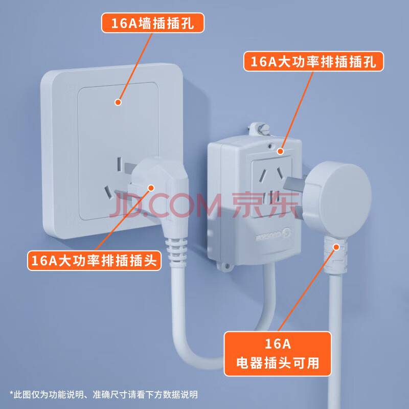 商品相册:吉顺16A插座排插线板大功率空调热水器电磁炉电源延长线插排接拖线板16a插头转16a 3米第