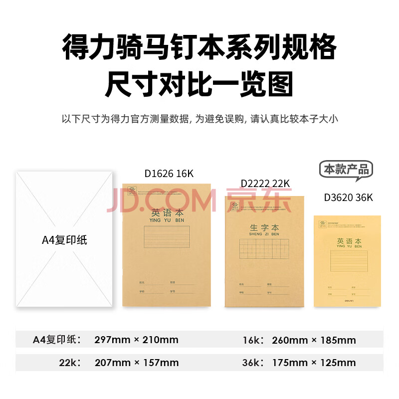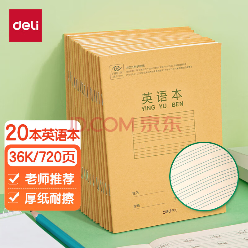 商品相册:得力(deli)36K18张10行小学生英语本作业本软抄本笔记本子文具必备 20本装D3620第