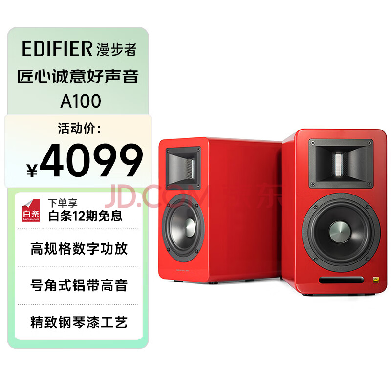 商品相册:漫步者(EDIFIER)【数码多年度推荐】AIRPULSE A100 立体声有源书架音箱2.0 客厅音响 电视音响 红色特别版第