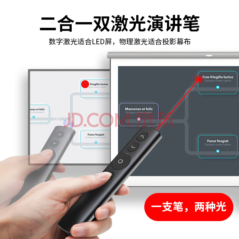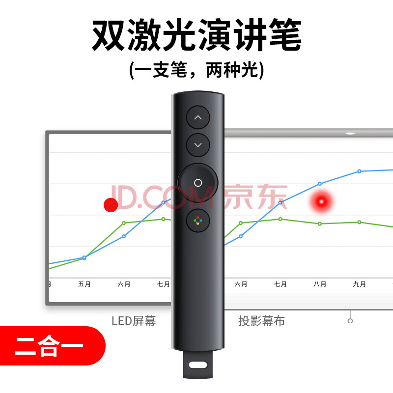 商品相册:宝视来 无线演示器(二合一)激光笔 PPT翻页 投屏演讲笔遥控电子笔课件笔 360度控制充电款第