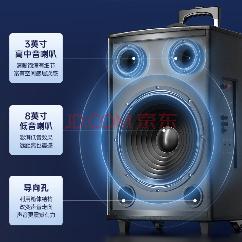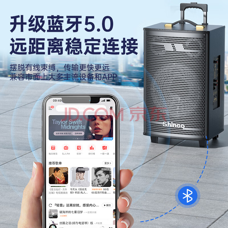 商品相册:新科(Shinco)T30 广场舞音响户外拉杆音箱大功率家用K歌无线蓝牙大音量扩音器便携式低音炮 8吋双咪第