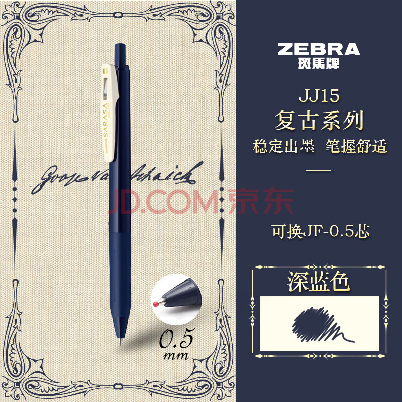 商品相册:斑马牌(ZEBRA)JJ15复古色系列笔 0.5mm按动中性笔子弹头签字笔 学生手账笔标记笔 JJ15-VDB 深蓝第