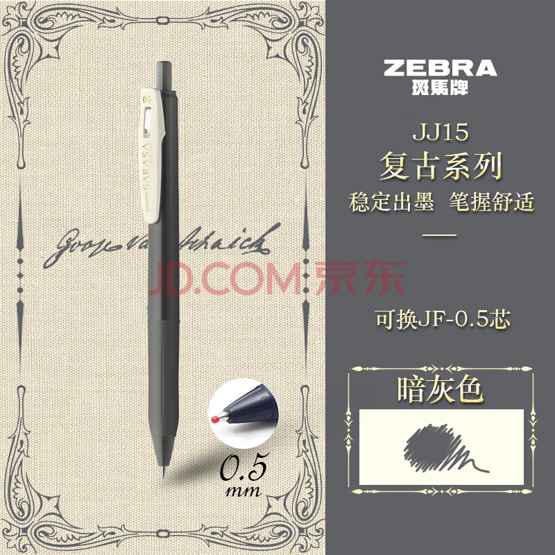 商品相册:斑马牌(ZEBRA)JJ15-V 新复古色中性笔 0.5mm按制签字笔 子弹头学生手账笔标记笔 暗灰色第