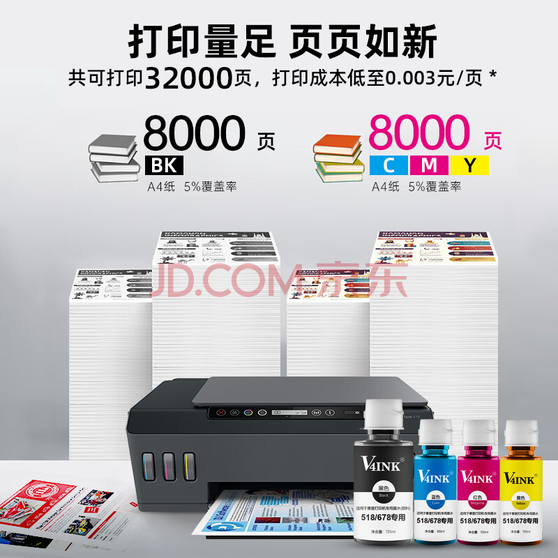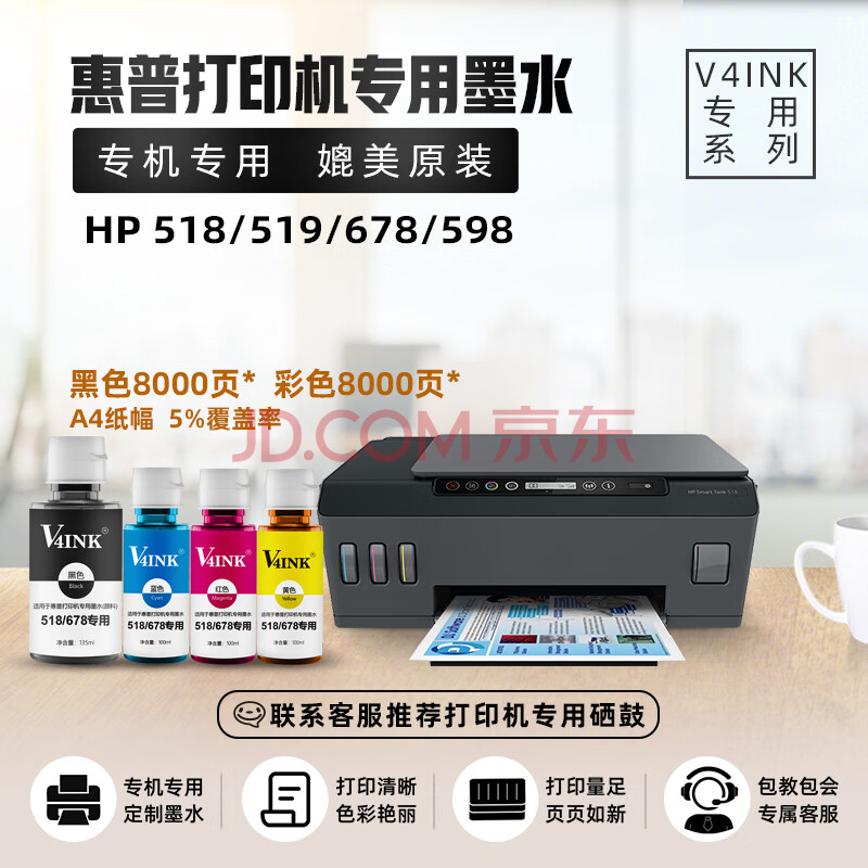 商品相册:V4INK适用惠普518墨水519墨水678墨水511 538 598 588 538 585 589 672 531 582 725 582 758 585打印机gt53xl墨水第