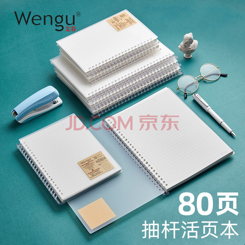 商品相册:文谷(Wengu)抽拉线圈活页笔记本子分页可拆卸学生手账本记事本26孔80页可替换内芯PL014-B5方格第