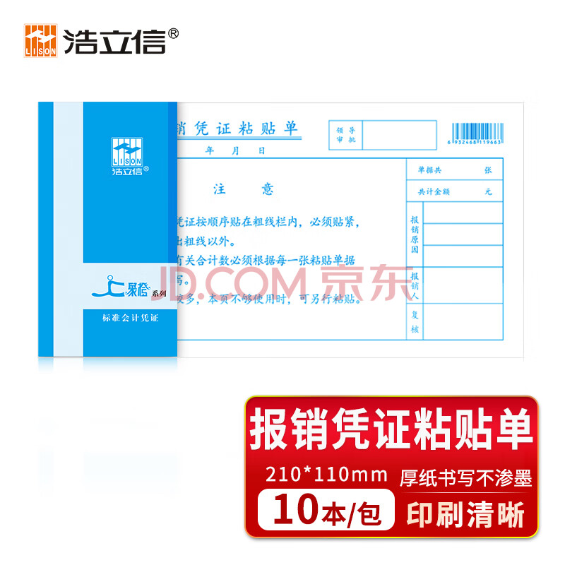 商品相册:浩立信(LISON) 聚橙质优10本装 报销凭证粘贴单210*110mm50页/本报销单通用财会用品热门商品办公用品打印纸第