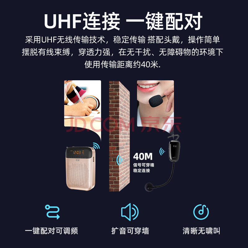 商品相册:索爱(soaiy)S988 小蜜蜂扩音器UHF无线18W大功率教学专用便携式腰挂麦克风教师导导购游插卡U盘播第