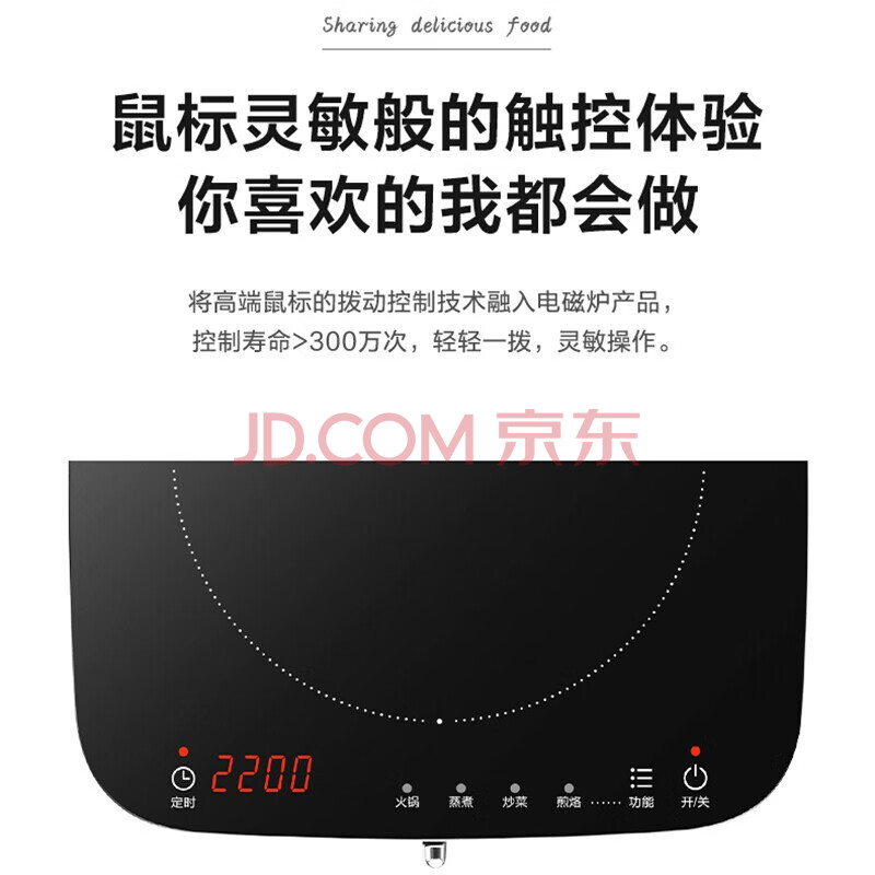 商品相册:美的(Midea)电磁炉 多功能家用智能触控2200W大火力拨动控制微晶面板恒匀火 C22-S301第