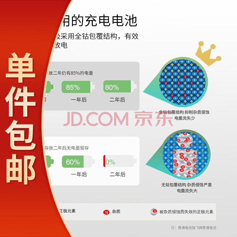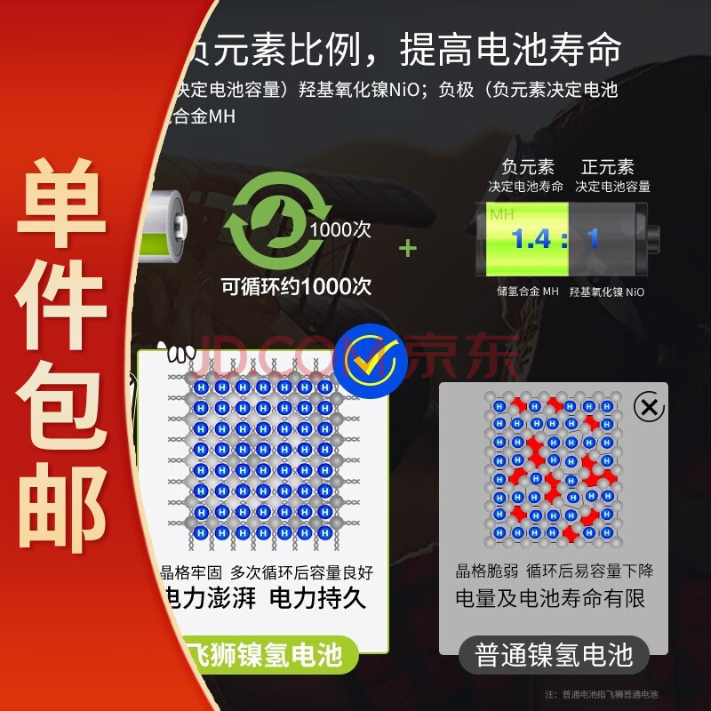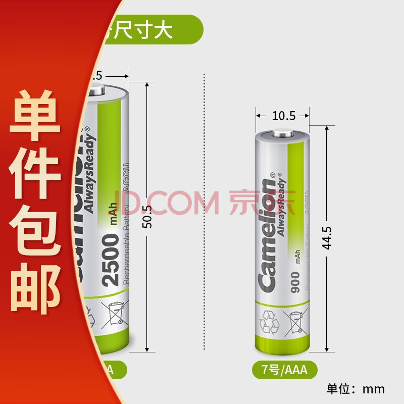 商品相册:飞狮(Camelion)低自放镍氢充电电池 7号/七号/AAA 900毫安时 2节 鼠标/键盘/遥控器/玩具/手电筒 一件包邮第