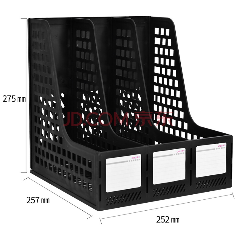 商品相册:得力(deli)3联镂空桌面文件框栏书立架档案收纳盒 办公室带标签资料文件置物架书本资料收纳神器 黑色27666第