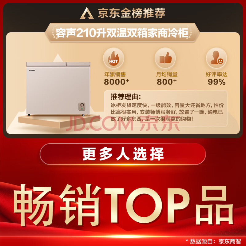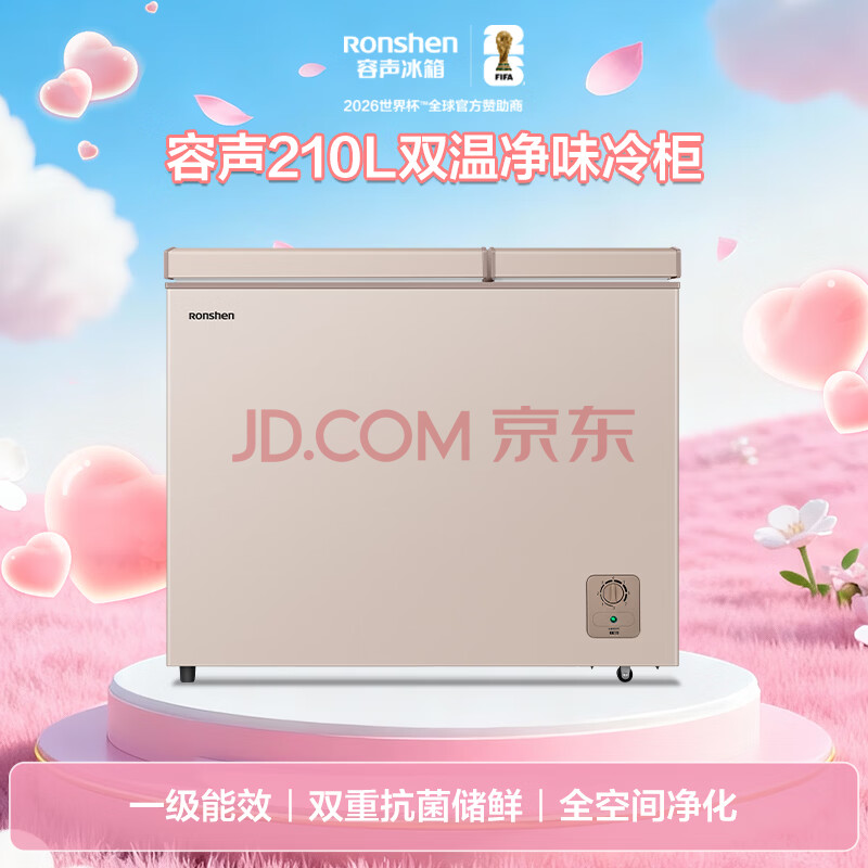 商品相册:容声(Ronshen)210L双温家用冰柜小型冷柜一级能效节能冷藏冷冻两用抗菌卧式冰箱BCD-210MSA第
