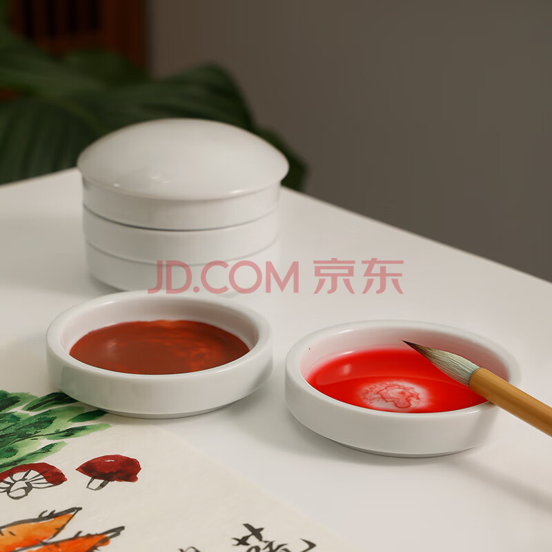 商品相册:漢墨手绘陶瓷墨碟 小号五层国画水彩颜料陶瓷颜料用品 文房四宝颜料儿童用墨碟砚台第