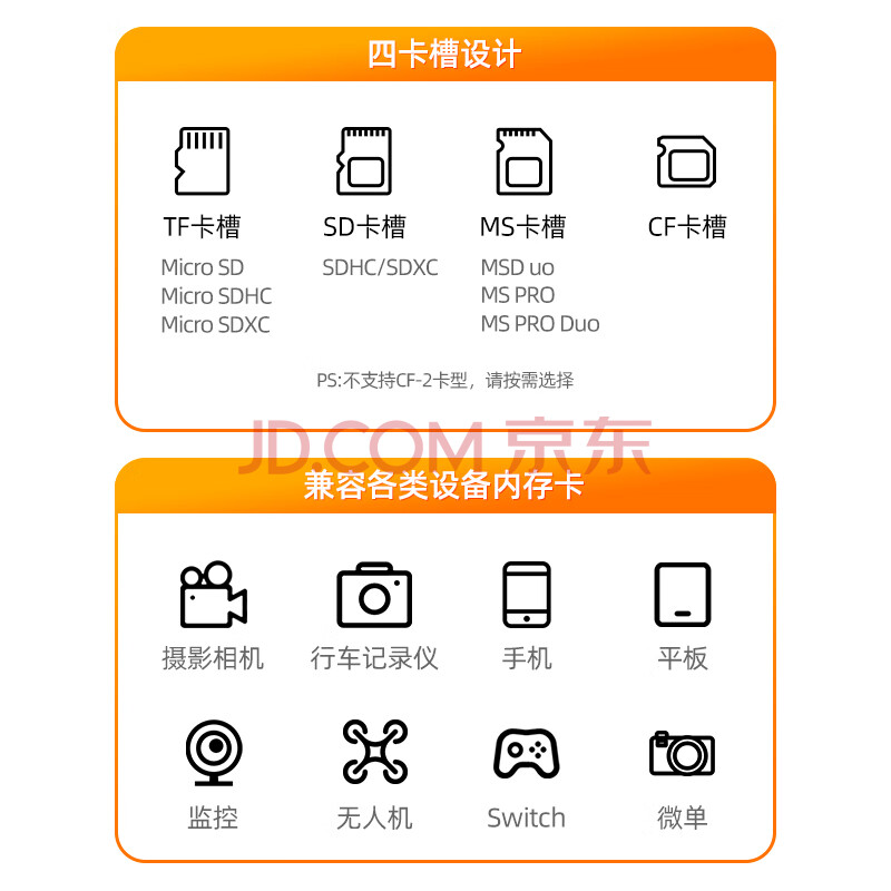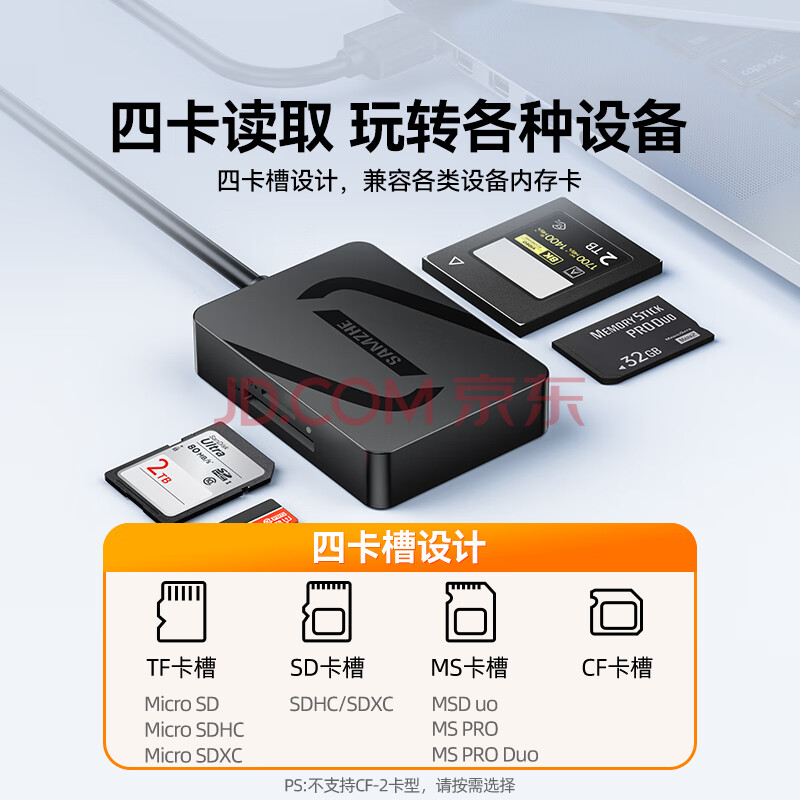 商品相册:山泽USB3.0高速读卡器多功能四合一 支持SD/TF/CF/MS型相机行车记录仪监控内存卡手机储存卡CRA04B第