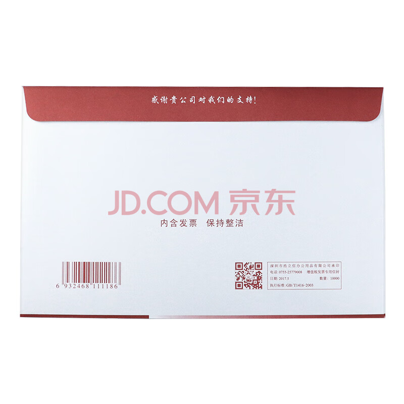 商品相册:浩立信(LISON)增值税发票专用信封版白卡纸发票信封 250*158mm 20个/包 加厚白卡纸第