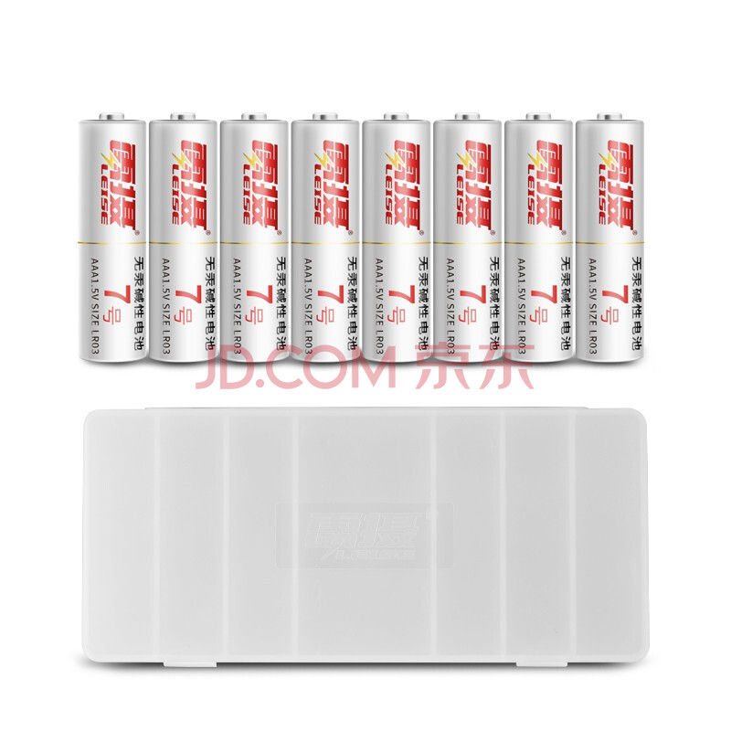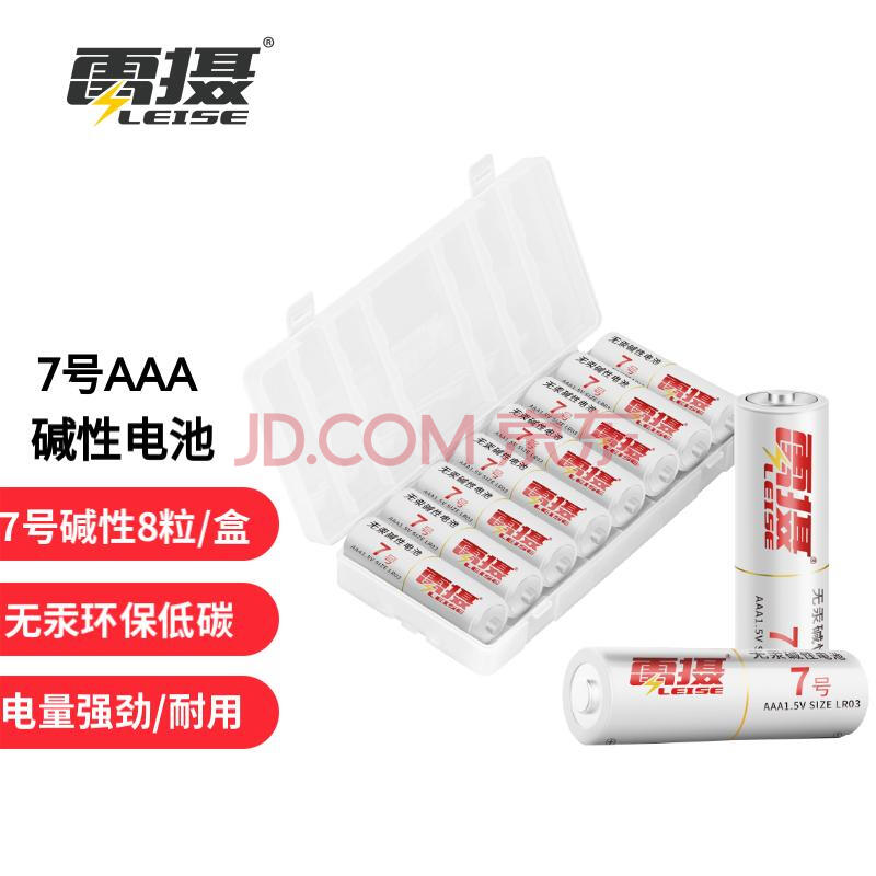 商品相册:雷摄 LEISE 7号碱性电池8粒/盒装 适用于:遥控器/儿童玩具/鼠标键盘/挂钟 七号/LR03/AAA电池第