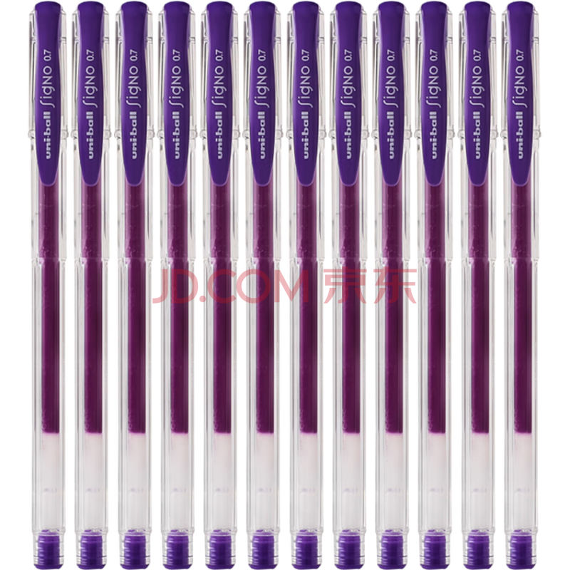 商品相册:uni三菱UM-100彩色中性笔签字笔 0.7mm学生办公防漏墨啫喱笔考试笔 紫色 12支/盒第